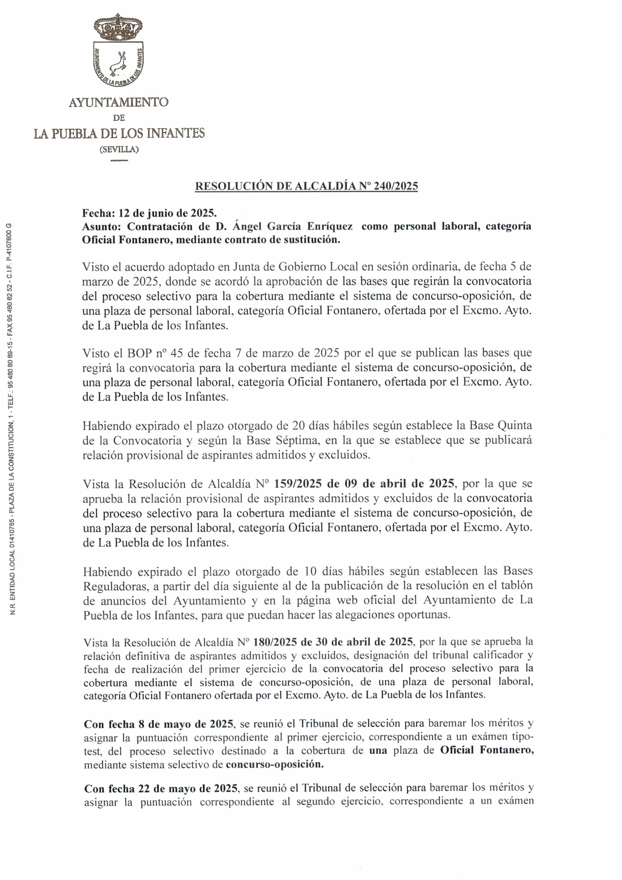 Resolución 240-2025 Nombramiento Fontanero F