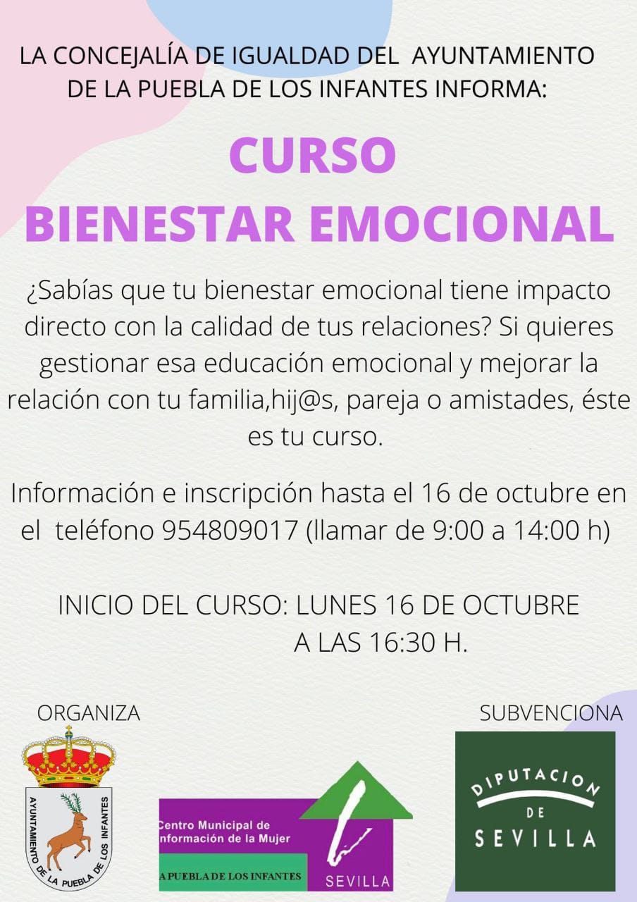 Curso Bienestar Emocional organizado por la Concejalía de Igualdad del Ayuntamiento, a través del Centro de Información a la Mujer y financiado por la Diputación Provincial de Sevilla.
