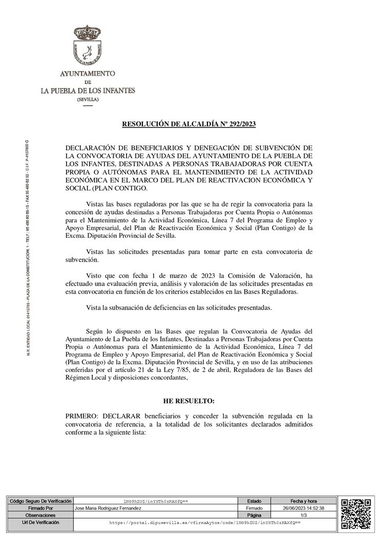 Declaración de beneficiarios y denegación de subvención de la convocatoria de ayudas a personas trabajadoras por cuenta propia o autónomas
