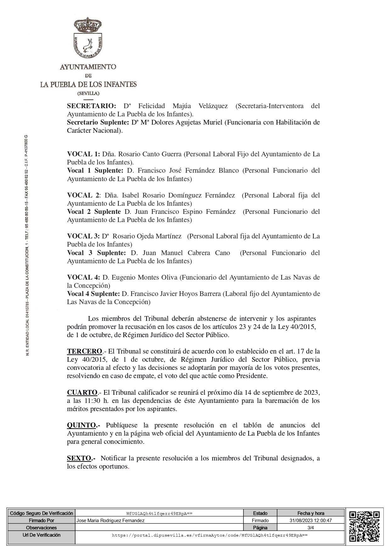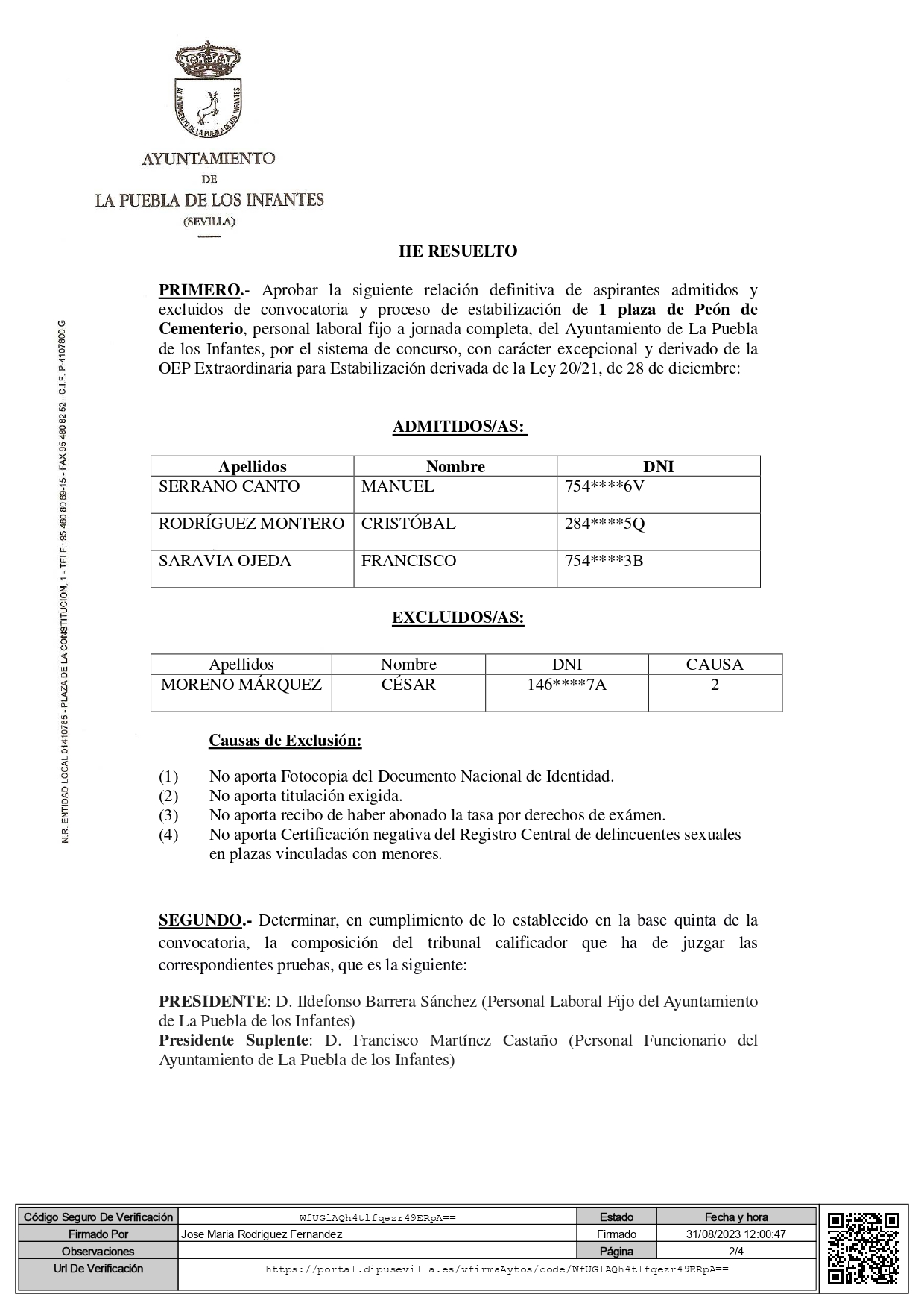 Lista definitiva de admitidos y designación del tribunal calificador para la selección de 1 plaza de Peón de Cementerio.