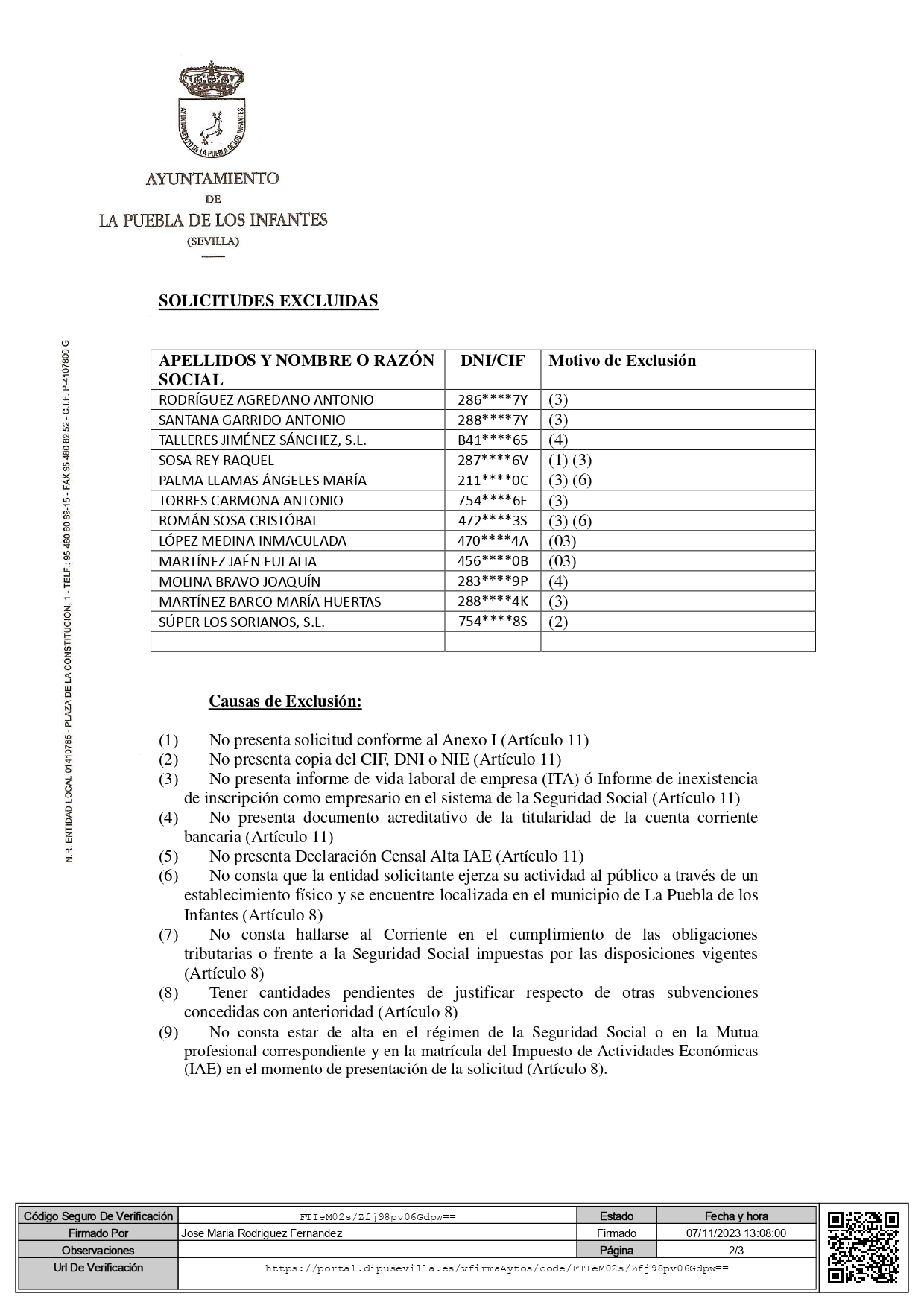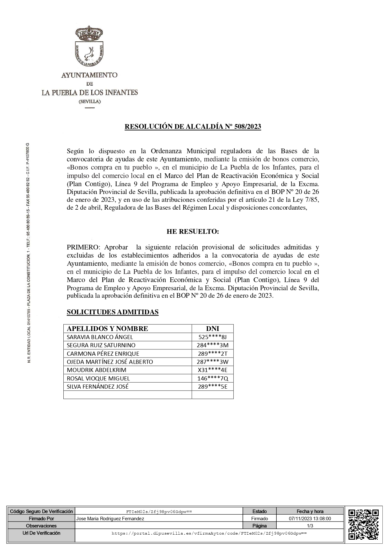 Relación provisional de solicitudes admitidas y excluidas de los establecimientos adheridos a la convocatoria «Bonos compra en tu pueblo »
