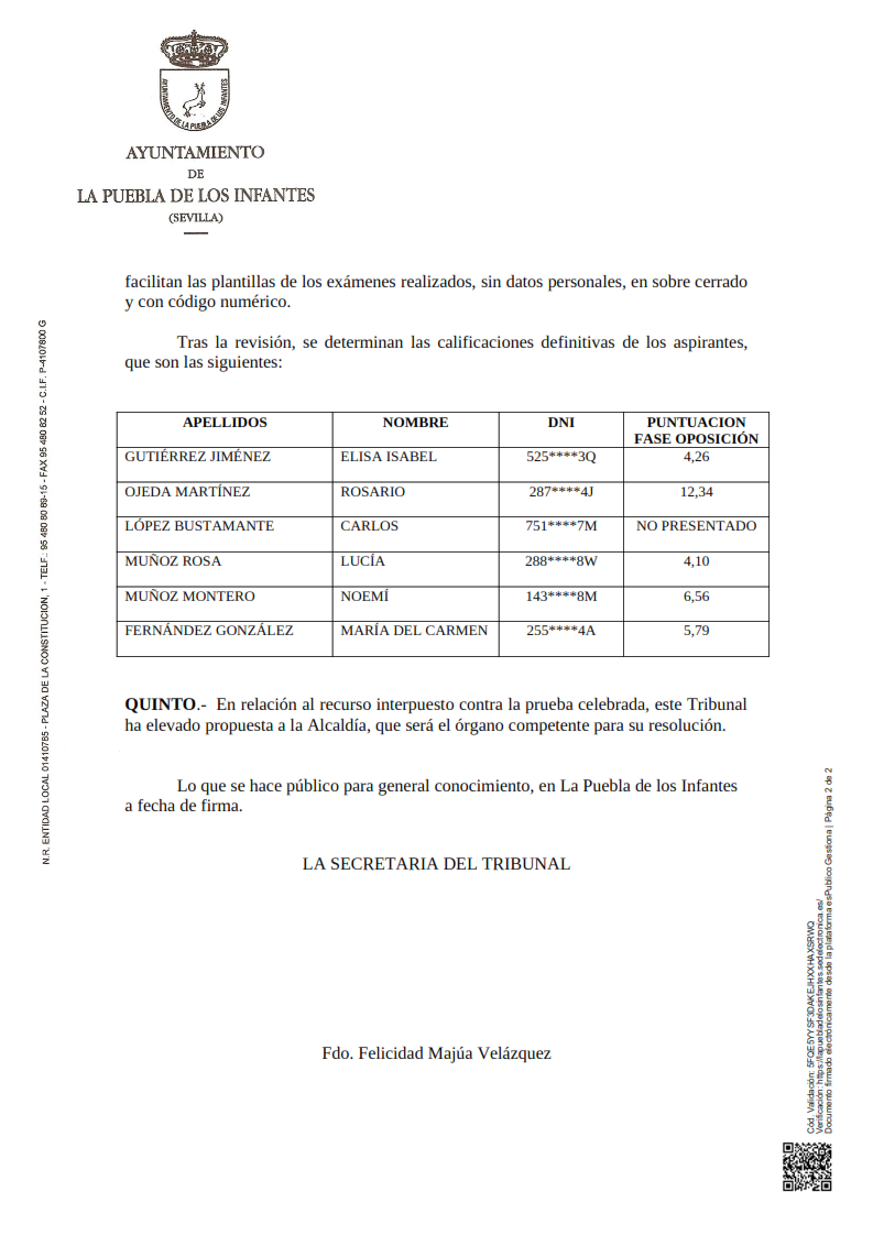 Resolución de alegaciones de la fase de oposición del proceso selectivo de 1 plaza de Psicólogo/a
