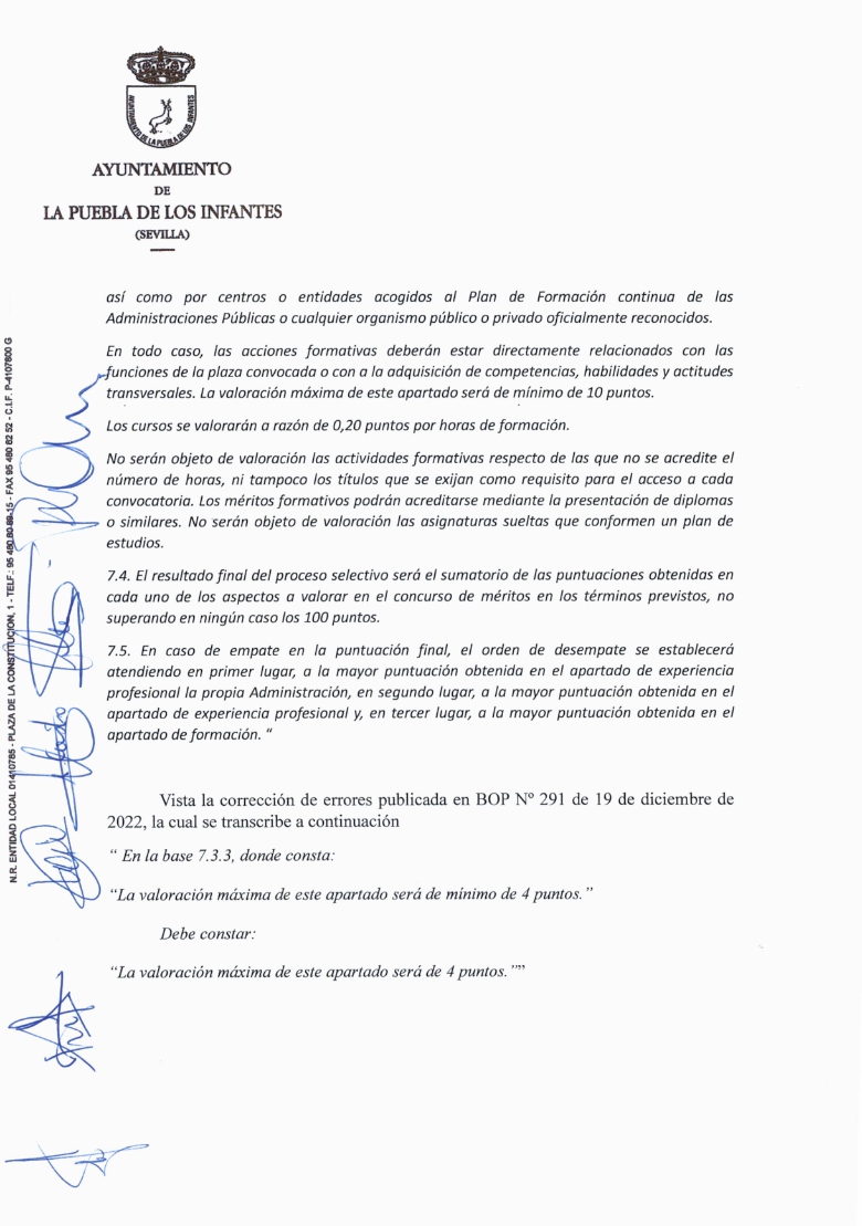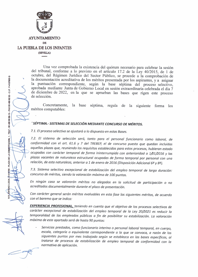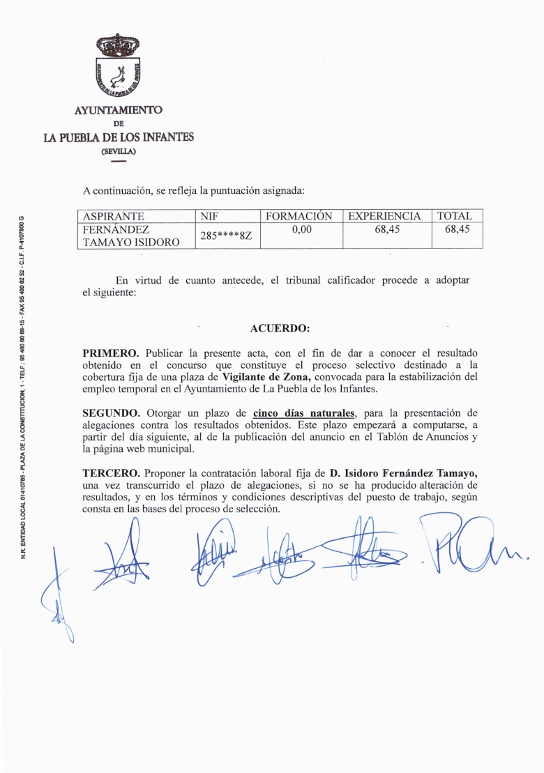 Acta del Tribunal Calificador del proceso de selección de una plaza de Vigilante de Zona