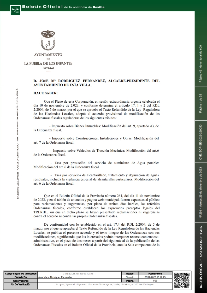 Aprobación definitiva de la modificación de algunas Ordenanzas fiscales