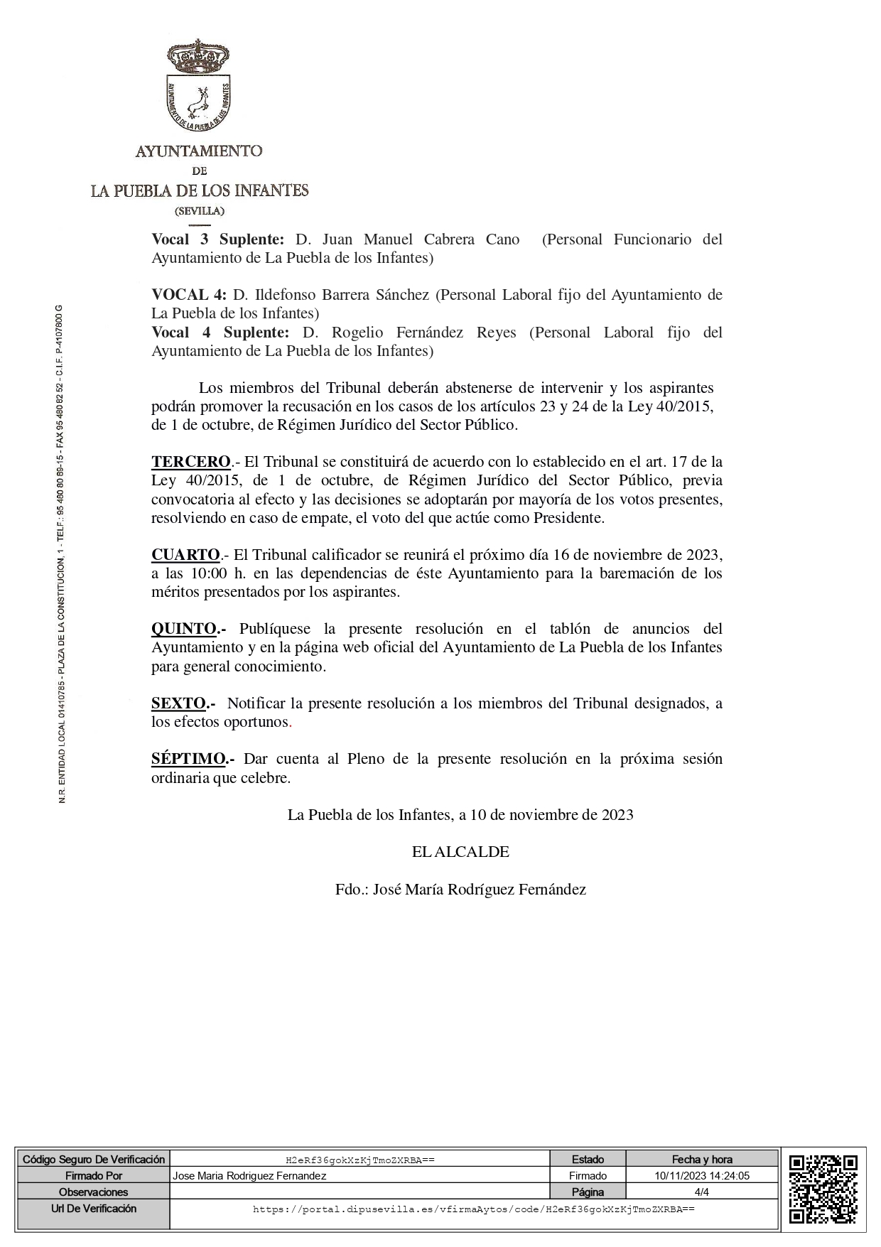 Lista definitiva de admitidos y designación del tribunal calificador para la selección de 4 plazas de Técnico/a Especial Educación Infantil