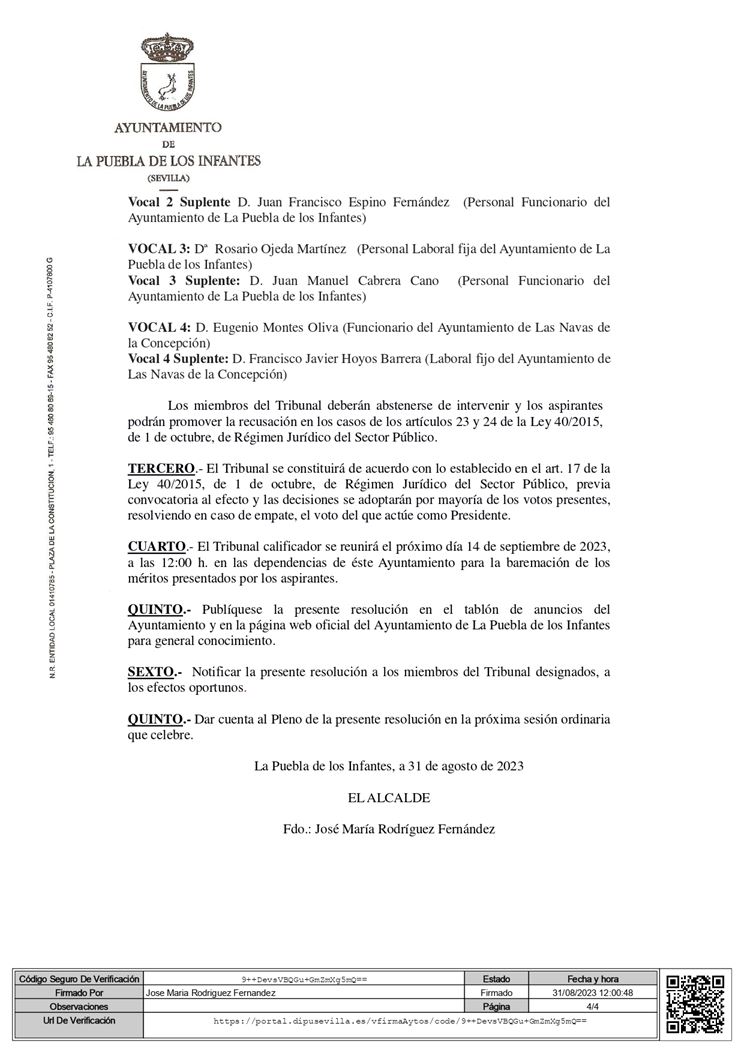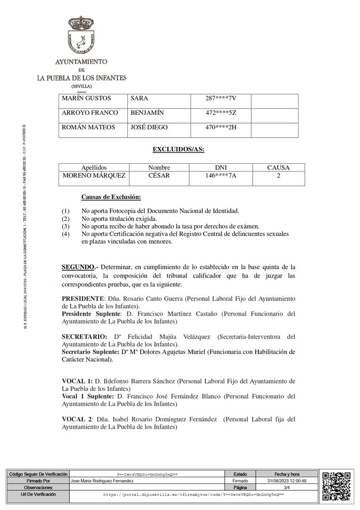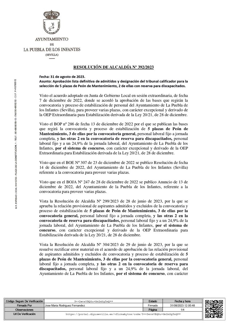 Lista definitiva de admitidos y designación del tribunal calificador para la selección de 5 plazas de Peón de Mantenimiento.