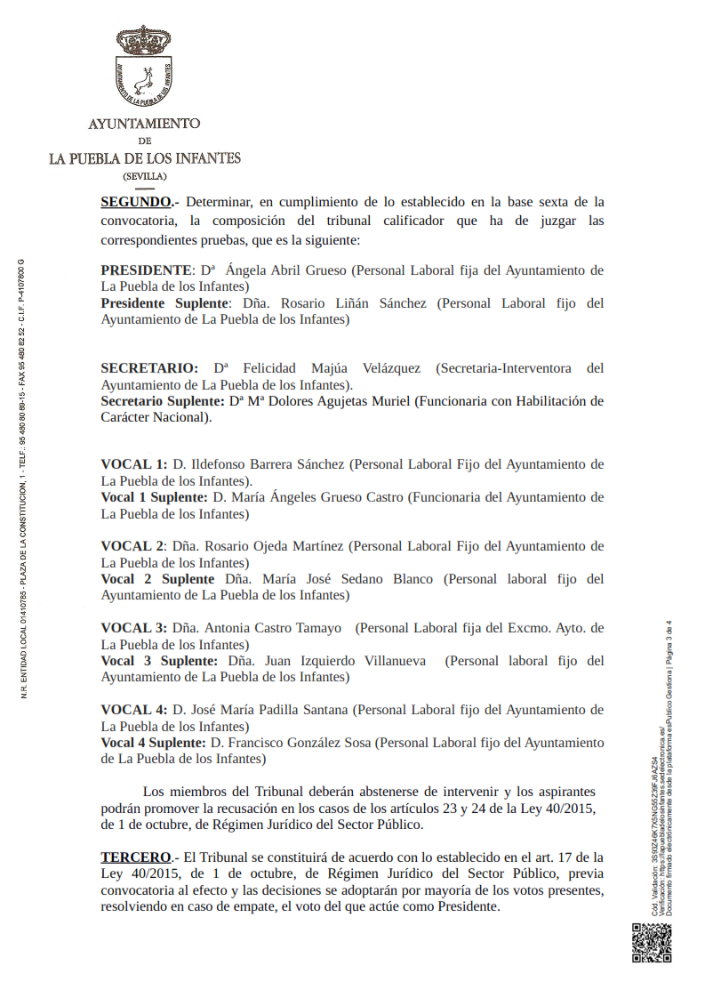 Relación definitiva de aspirantes admitidos y excluidos de convocatoria y proceso de estabilización de 1 plaza de Vigilante Urbano