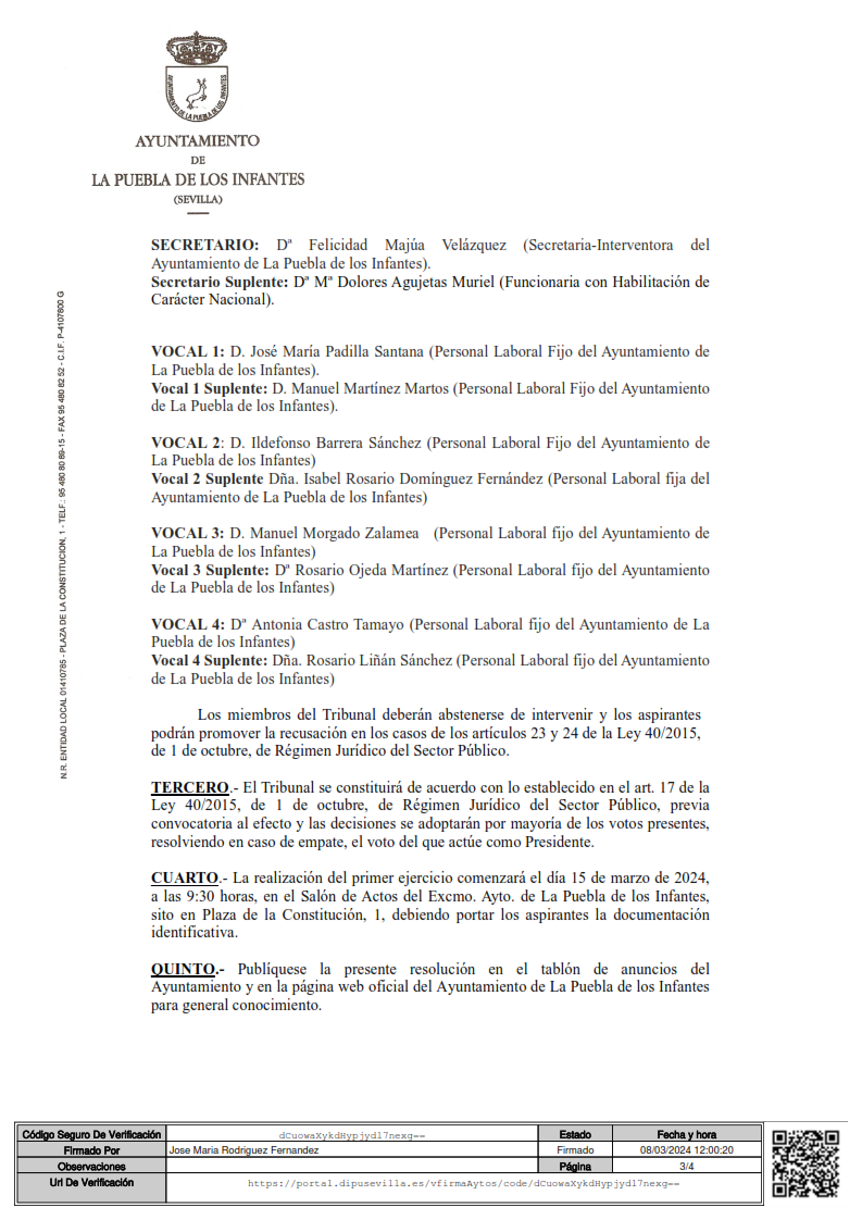 Relación definitiva de aspirantes admitidos y excluidos de la convocatoria del proceso selectivo mediante concurso-oposición de una plaza de Oficial de Primera mediante contrato de sustitución