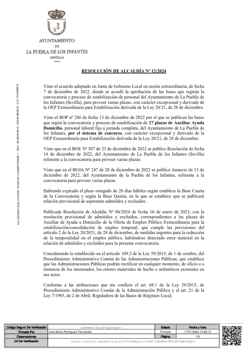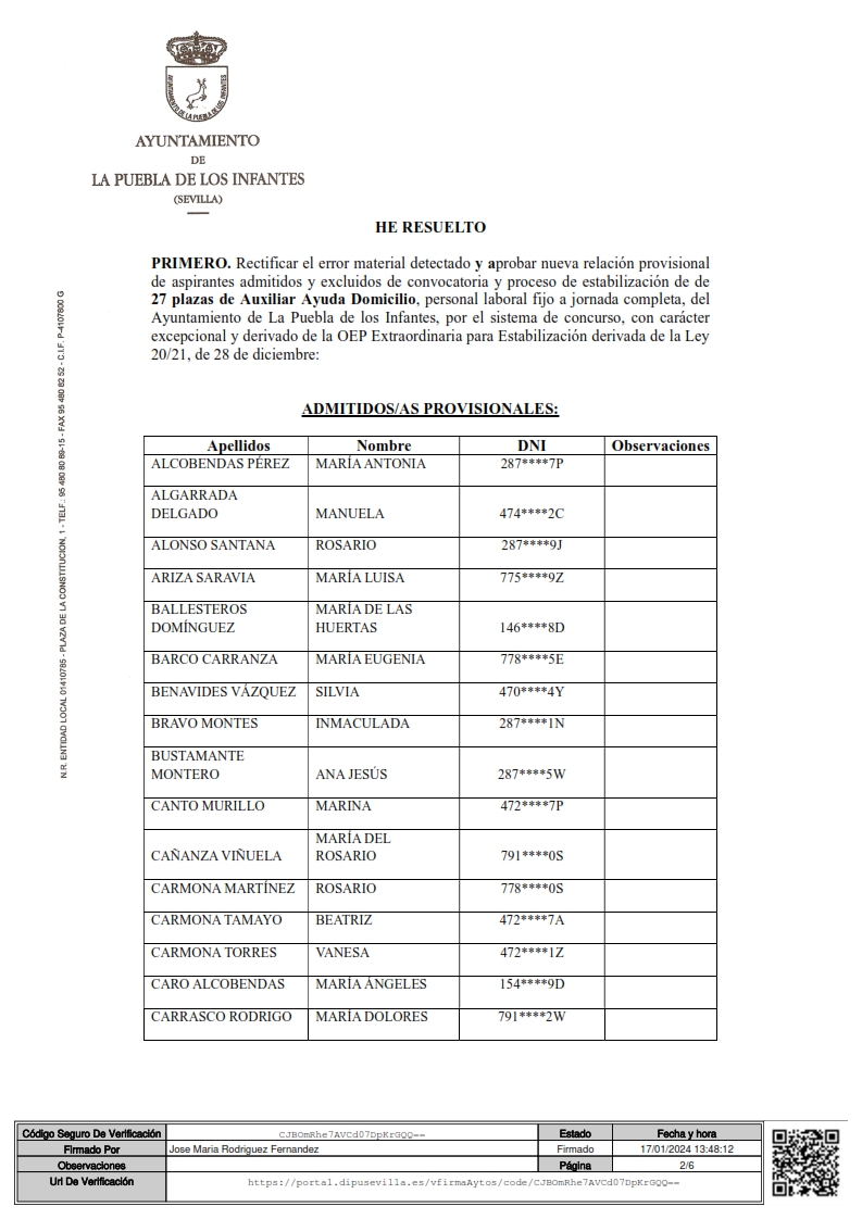 Relación provisional (corrección) de aspirantes admitidos y excluidos de convocatoria y proceso de estabilización de 27 plazas de Auxiliar Ayuda Domicilio